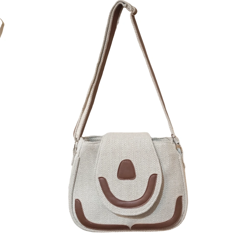 Elevate your everyday style with this artisan-crafted beige shoulder bag. Made from high-quality cotton and AF leather, this bag combines durability with a chic look. Its versatile design allows you to wear it as a side bag or a shoulder bag, making it perfect for any occasion—whether you’re running errands or heading out for a night out.