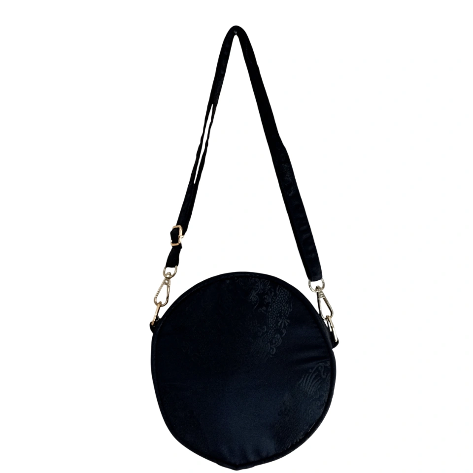 Elevate your style with the Red Brocade Round Crossbody Bag, a perfect blend of elegance and functionality. Crafted from luxurious brocade, this bag showcases a rich red hue that exudes sophistication, making it an ideal accessory for both casual and formal occasions. Its intricate woven texture adds a touch of timeless charm, ensuring you stand out effortlessly.