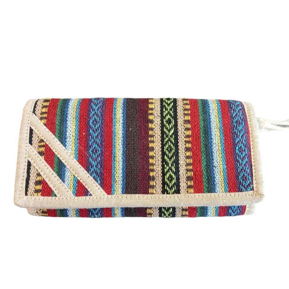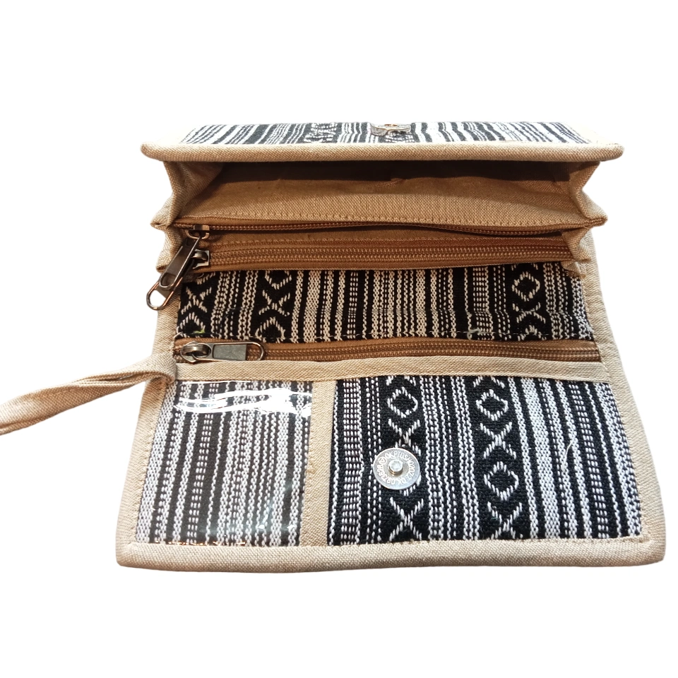 Elevate your fashion sustainably with our Handmade Cotton Mix Hand Wallet. Meticulously crafted in Nepal, this wallet merges durability with style. It’s not just a wallet; it’s a statement piece that fits all occasions. With three zippered pockets and four additional compartments, it’s the perfect size to organize your essentials. Opt for our eco-friendly wallet and make a difference.