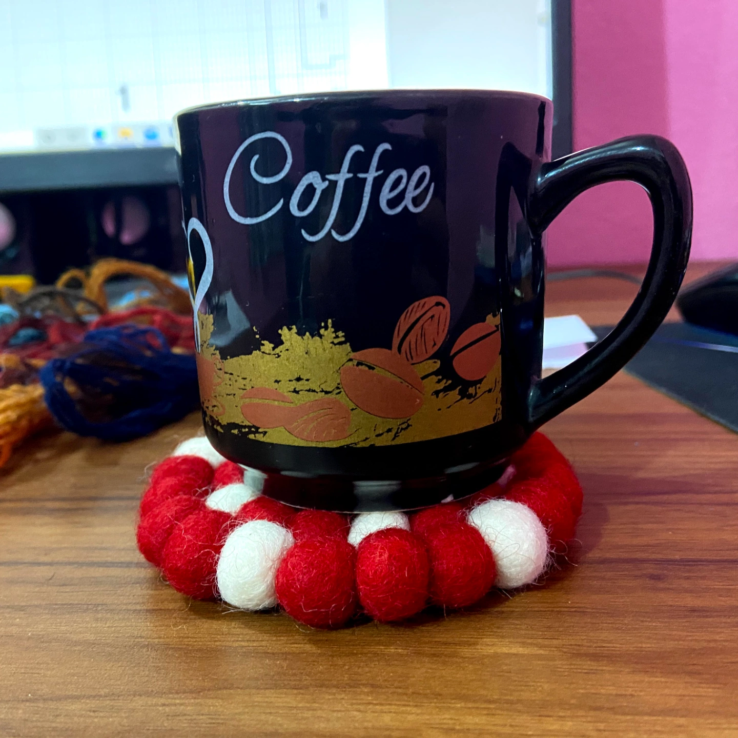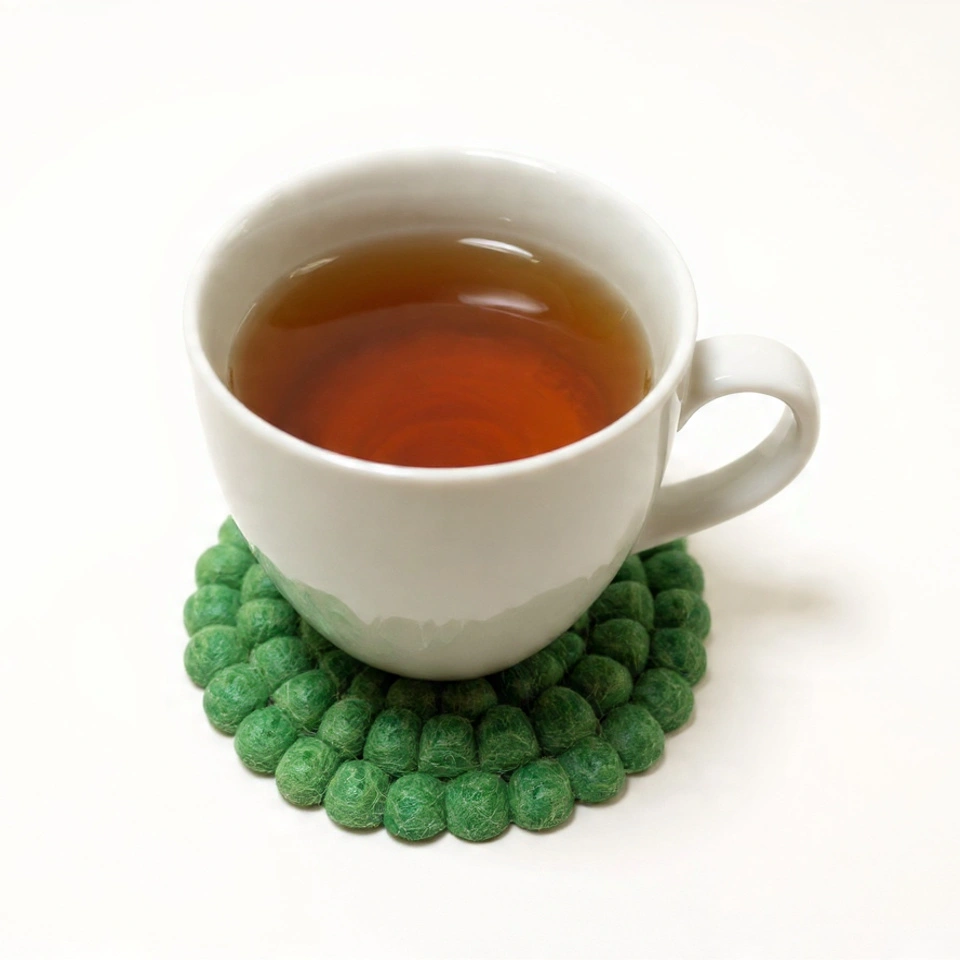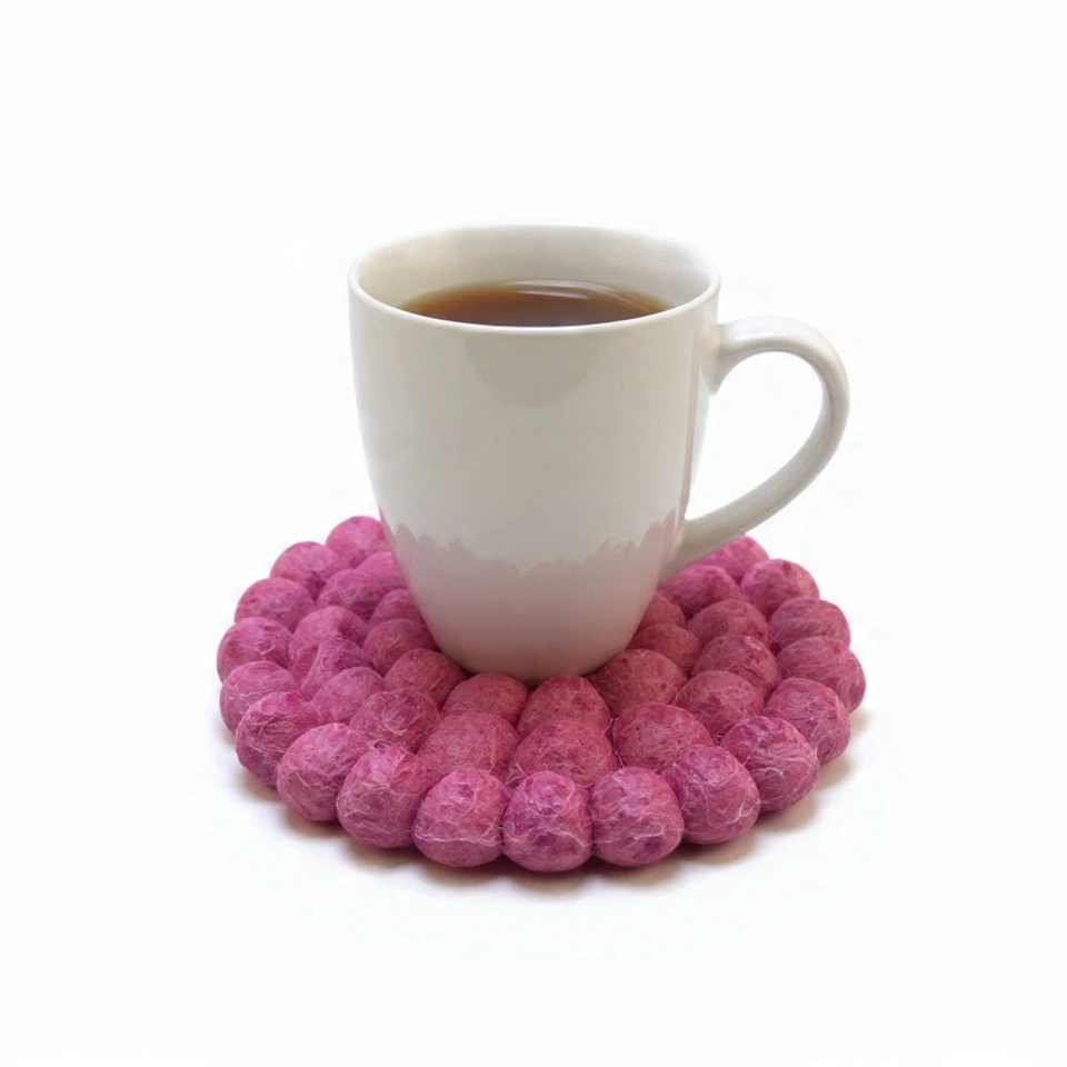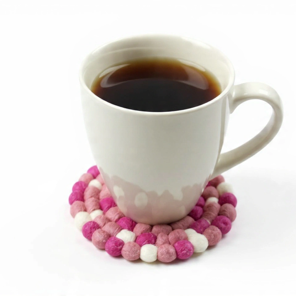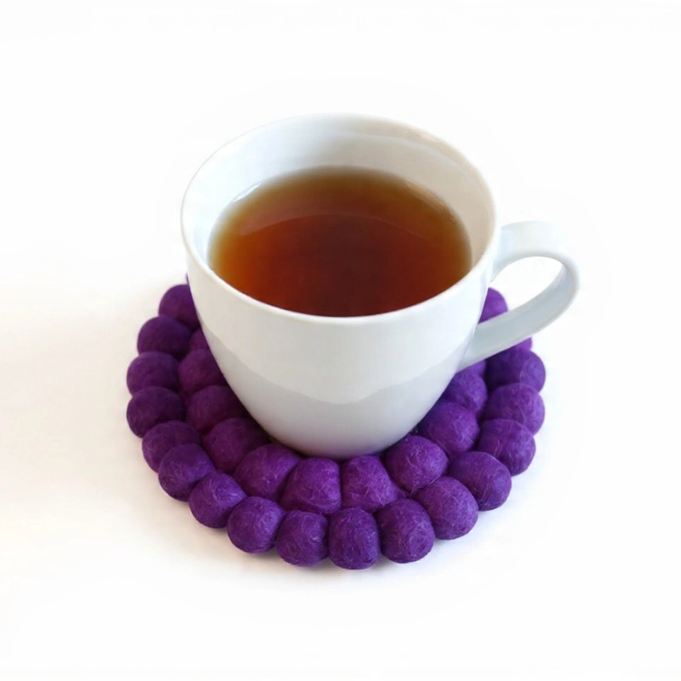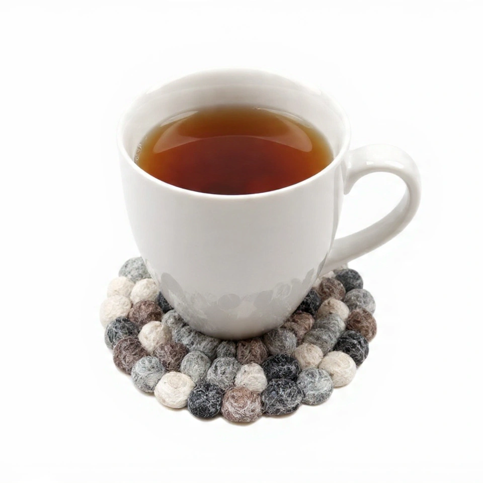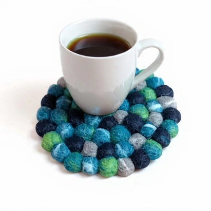 Add a touch of Nepalese charm to your home with our Felt Ball Tea Coasters! Handmade with love using 100% New Zealand wool, these coasters are eco-friendly, durable, and totally unique. The vibrant colors are achieved with non-toxic, AZO-free dyes, so you can feel good about what's on your table.