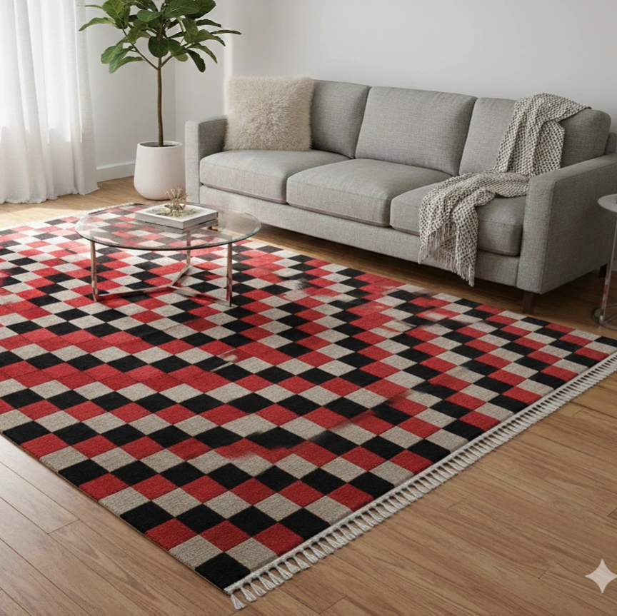 Its modern red pattern brings warmth and elegance to any room, while the environmentally friendly dyeing process guarantees vibrant, lasting colors. Measuring 170 cm x 240 cm (5.58 ft x 7.87 ft) and 6 mm thick, this new carpet is perfect for those seeking exceptional quality and timeless beauty.