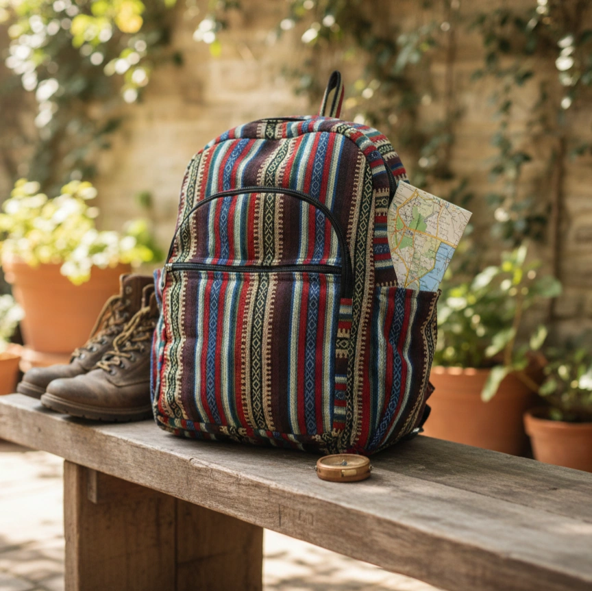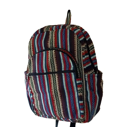 Experience eco-friendly style with our durable Cotton Blend Backpack. Meticulously crafted, this bag is ideal for school, college, or outdoor adventures. It features two front zipper pockets, an interior compartment, and ample space for all your essentials. The side pockets are perfect for carrying water bottles. Please note that colors may vary slightly due to lighting or screen resolution.
