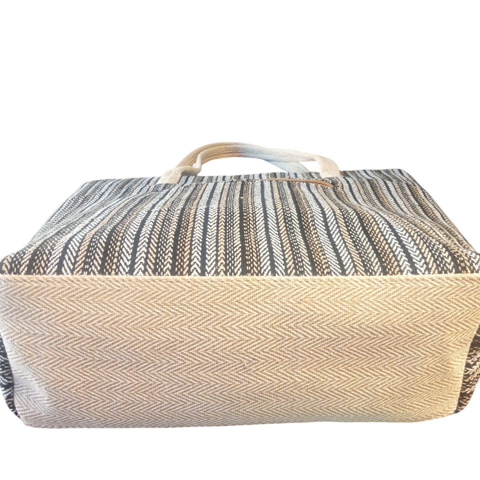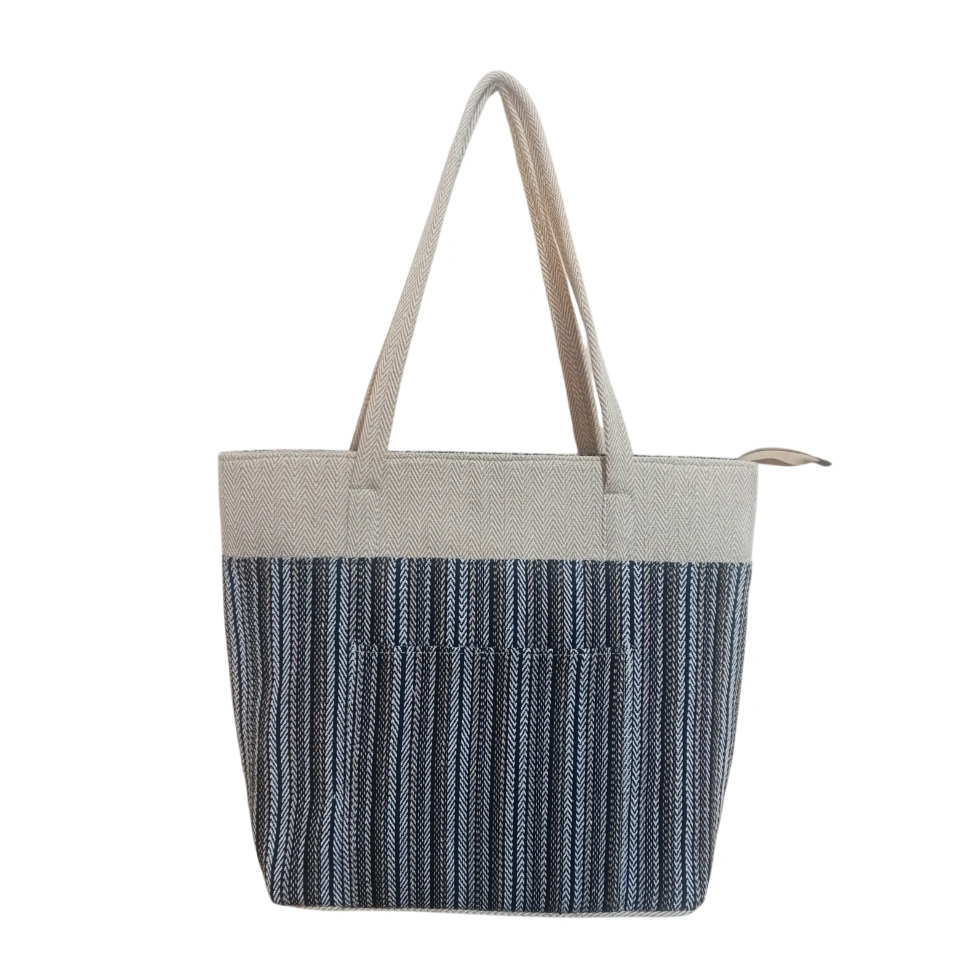 The Black & White Variant features a timeless color palette, crafted from 100% cotton for a lightweight yet durable feel. With secure zippers, five spacious compartments, and adjustable 60 cm white straps, it offers practicality without compromising style. Its dimensions—42 cm upper width, 31 cm lower width, 33 cm height, and 12 cm thickness—make it ideal for daily essentials.