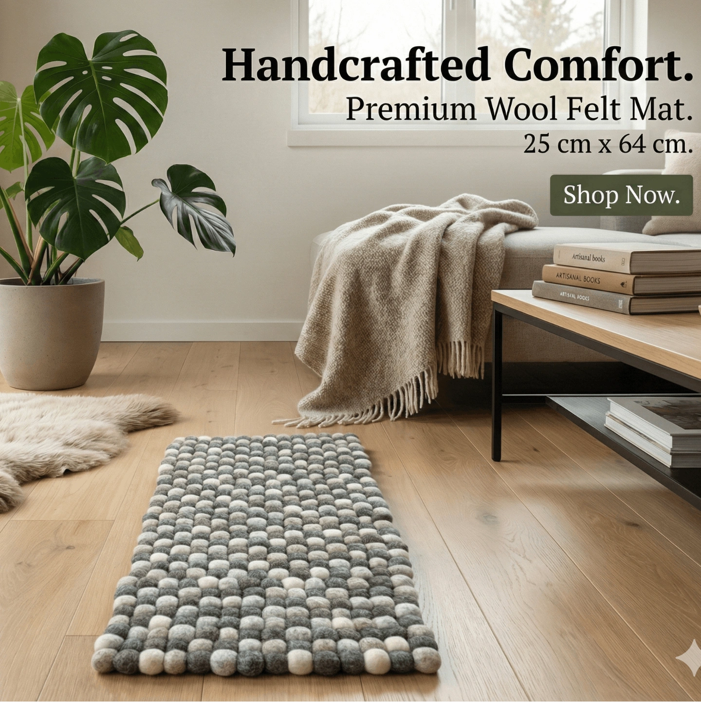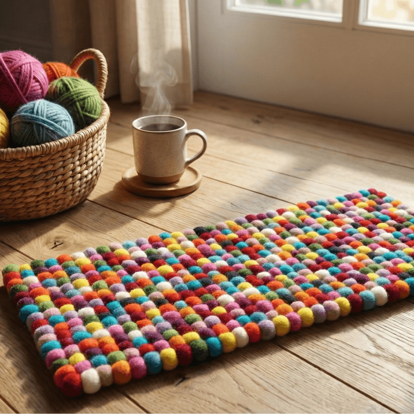 Nepali Felt Ball Table Runners are robust design products made of 100% New Zealand wool. The colors used for dyeing are non-toxic, non-allergic, and AZO-free. Best workmanship, crafted from high-quality materials and meticulous craftsmanship, ensures the highest quality. Those MADE IN NEPAL Table Runners made from individual felt balls are connected using a special knotting process. The natural hues make every felt Runner is unique. The Runner can be used on both sides to create a stylish home décor. Environmentally friendly dyeing methods there may be minimal color difference. Colors may vary due to the light or resolution of the screen.