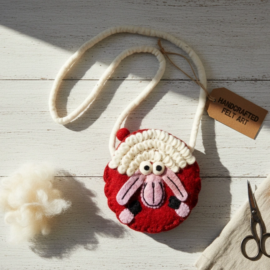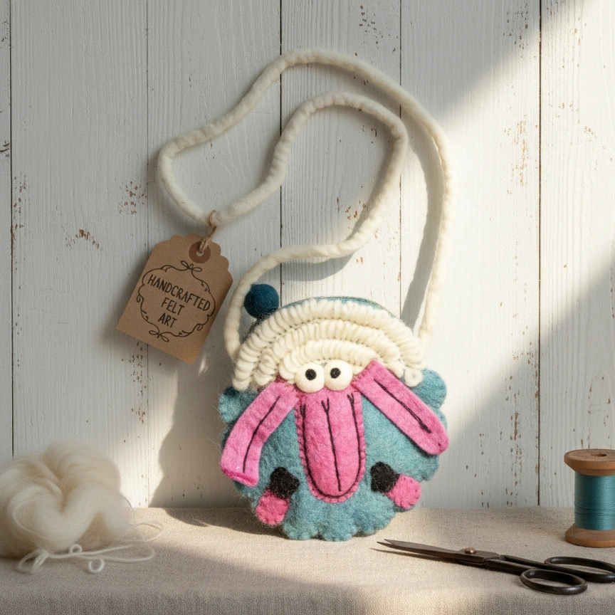 The bag also makes a thoughtful, sheep-themed gift for friends who enjoy textile arts like spinning wool, needle felting, or knitting. Handcrafted with care, each bag is unique and features a durable, weatherproof wool exterior, while the soft cotton lining adds extra comfort. Lightweight and beautifully designed, this bag offers both practicality and style.