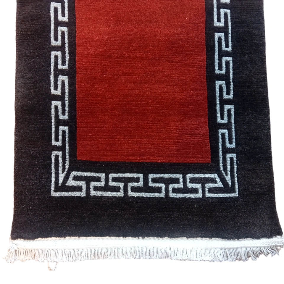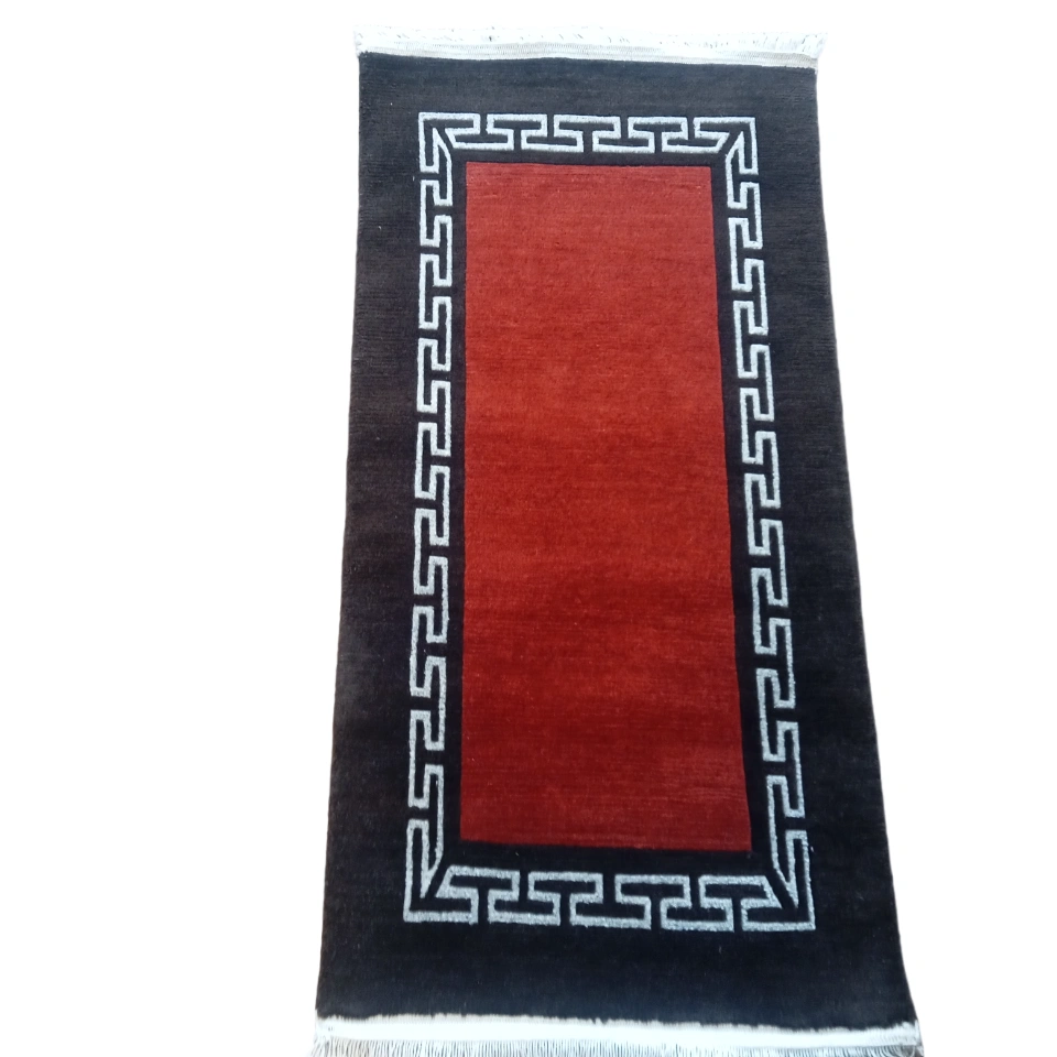 This stunning red hand-knotted Nepali carpet, measuring 60 cm x 117 cm (1.97 Ft x 3.84 Ft), combines traditional craftsmanship with timeless beauty. Expertly woven using the Tibetan weaving technique by skilled artisans in Nepal, it is crafted from a premium blend of 80% New Zealand wool and 20% cotton, ensuring a luxurious texture and durability. The 60-knot quality and 6 mm thickness contribute to its rich feel and intricate design.