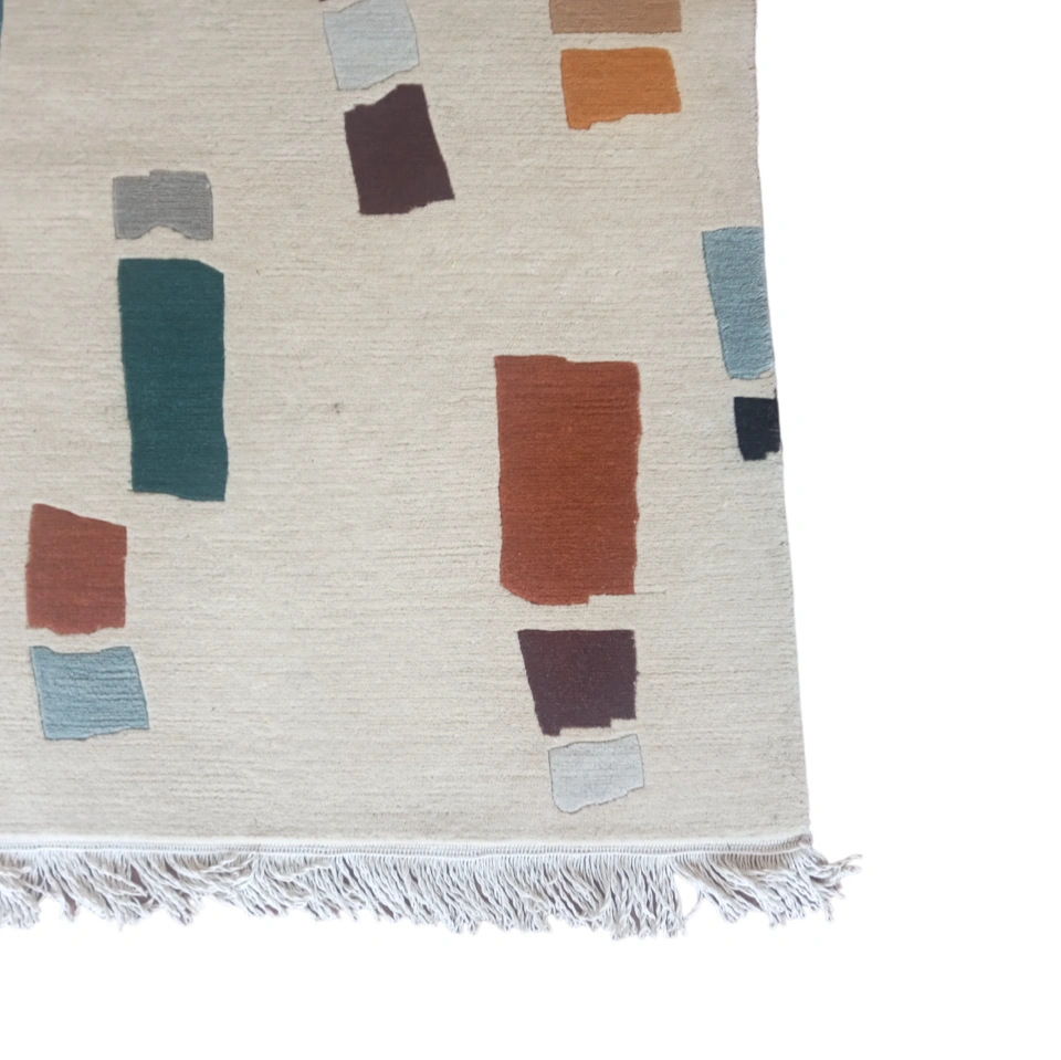 This hand-knotted Nepali woolen carpet combines traditional craftsmanship with modern design. Made with 60 knots, it features exceptional quality and durability. The neutral beige color adds a touch of elegance to any room, making it ideal for contemporary interiors. With dimensions of 143 cm x 192 cm ( 4.69 Ft. x 6.30 Ft.), it is perfect for living rooms, bedrooms, or offices. The 6 mm thickness provides a soft yet firm feel underfoot, ensuring comfort and longevity.