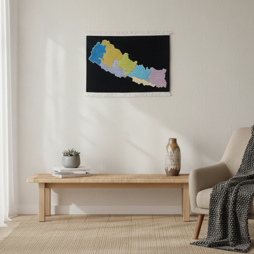 Nepali Hand-Knotted Carpets are finely made with the Hand-Knotted Tibetan weaving technique In Nepal, made by a local artisan with a mix of New Zealand Wool. Best workmanship from high-quality materials and careful craftsmanship guarantee the highest quality. Due to the environmentally friendly dying method. Colors may vary due to the light or resolution of the screen. This carpet is used as a Wall Hanging