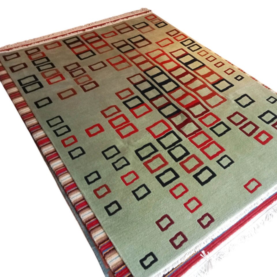 Made from 100% New Zealand wool and durable cotton, this carpet ensures exceptional quality, comfort, and longevity. With a 60-knot construction and a soft 6mm thickness, it offers both durability and a luxurious feel underfoot. The eco-friendly dyeing method used enhances its natural aesthetic while staying kind to the environment.