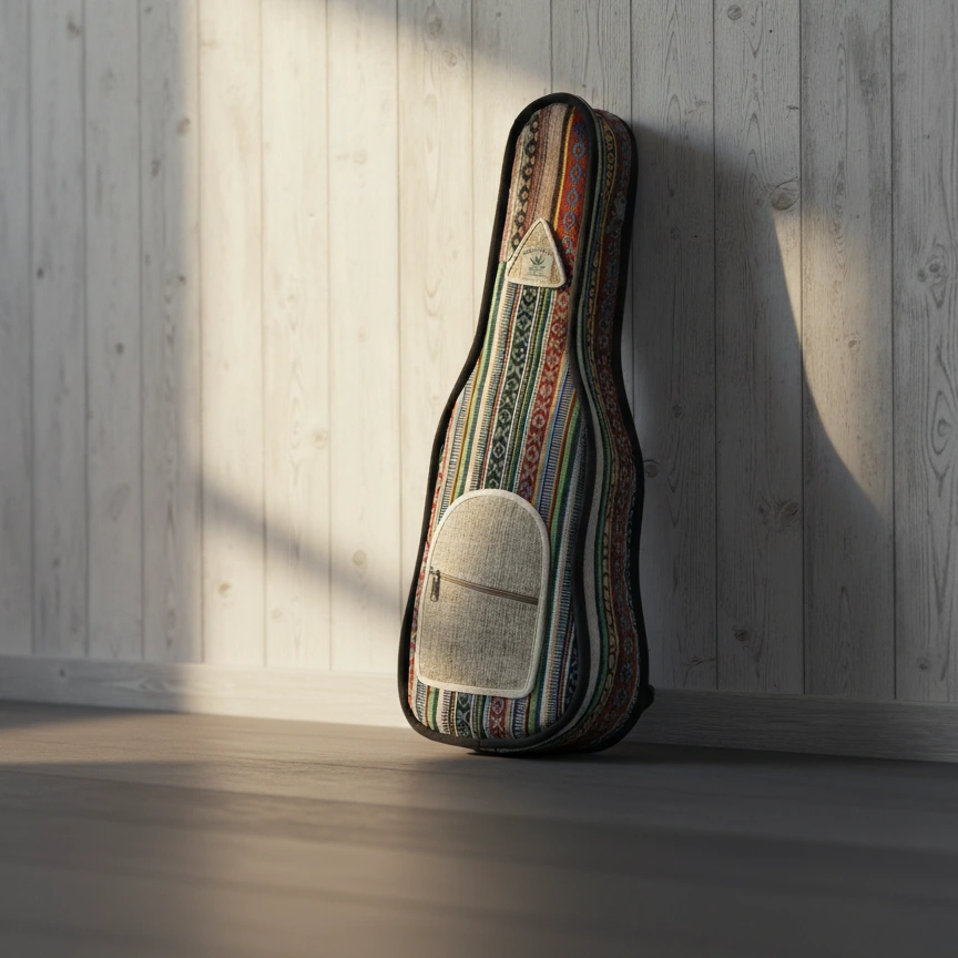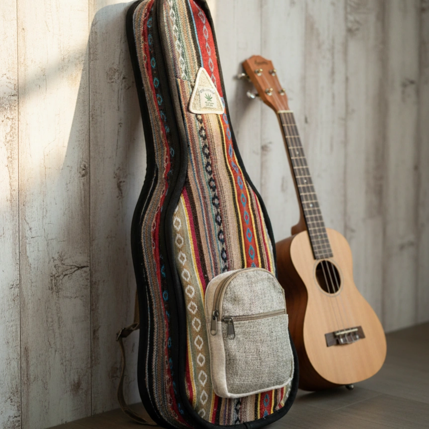 This sustainable, multi-hued ukulele bag crafted from a blend of natural hemp and cotton fibers offers exceptional resilience and toughness. Its interior is lined with soft black cotton, enhancing its durability and providing additional strength.