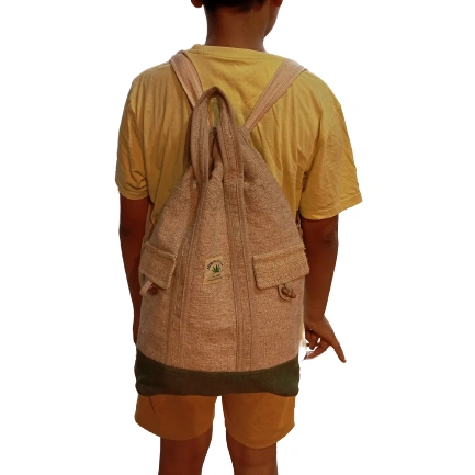 · This stylish hemp backpack combines sustainability and functionality with a trendy design. Crafted from pure hemp and cotton, it offers a natural, eco-friendly solution for your everyday carry. The spacious main compartment, secured with a drawstring closure, provides ample storage space, making it easy to organize your belongings. Two front pockets with button closures ensure quick access to smaller items, keeping you organized on the go. The adjustable shoulder straps provide a comfortable, customizable fit for any wearer. With its natural and green color options, this backpack suits casual and eco-conscious lifestyles. Please note that slight variations from the product image may occur due to its handcrafted nature. Ideal for daily use, this hemp backpack effortlessly combines style, durability, and practicality.