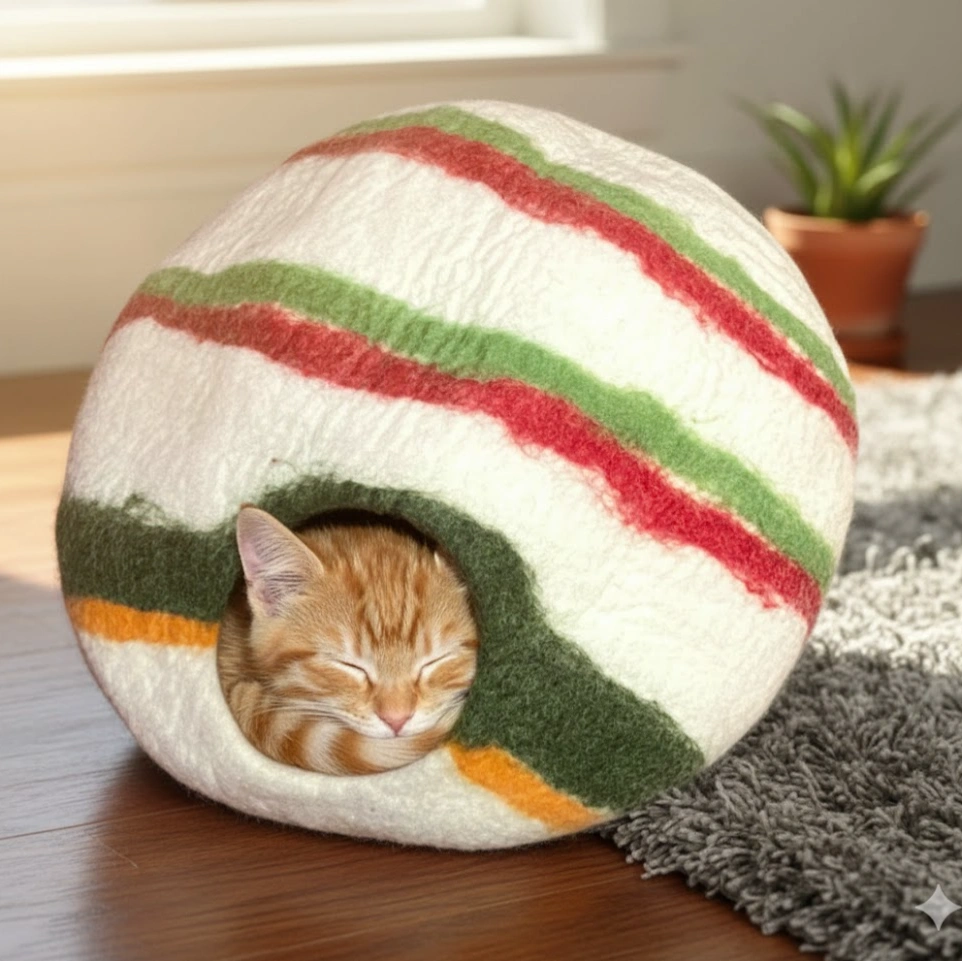 : Skillfully hand-felted by local artisans using traditional felting techniques.