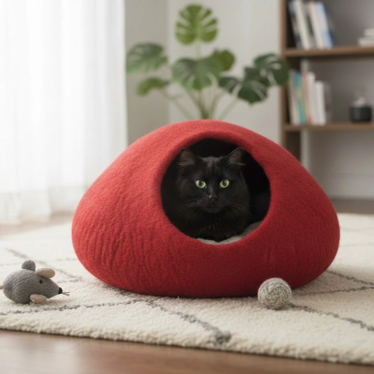 Ultimate Comfort – Hand‑felted from 100 % New Zealand wool, the house keeps cats cozy in winter and cool in summer.