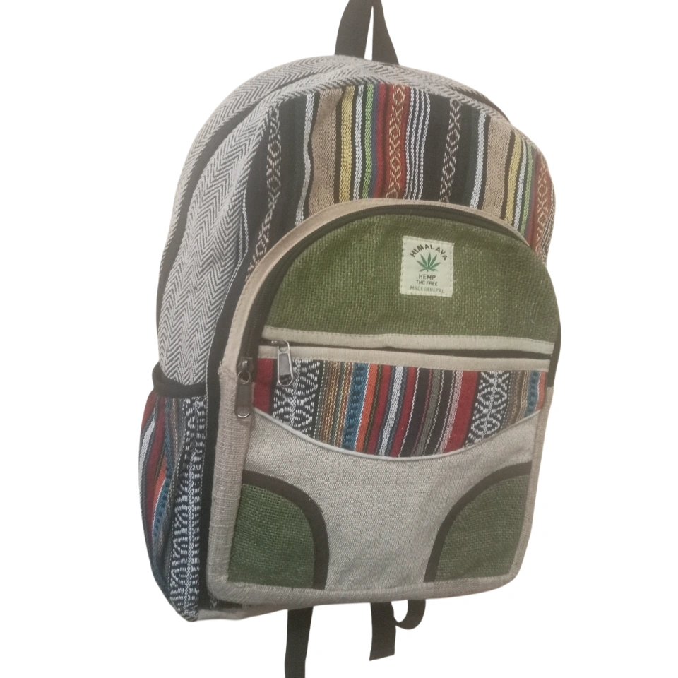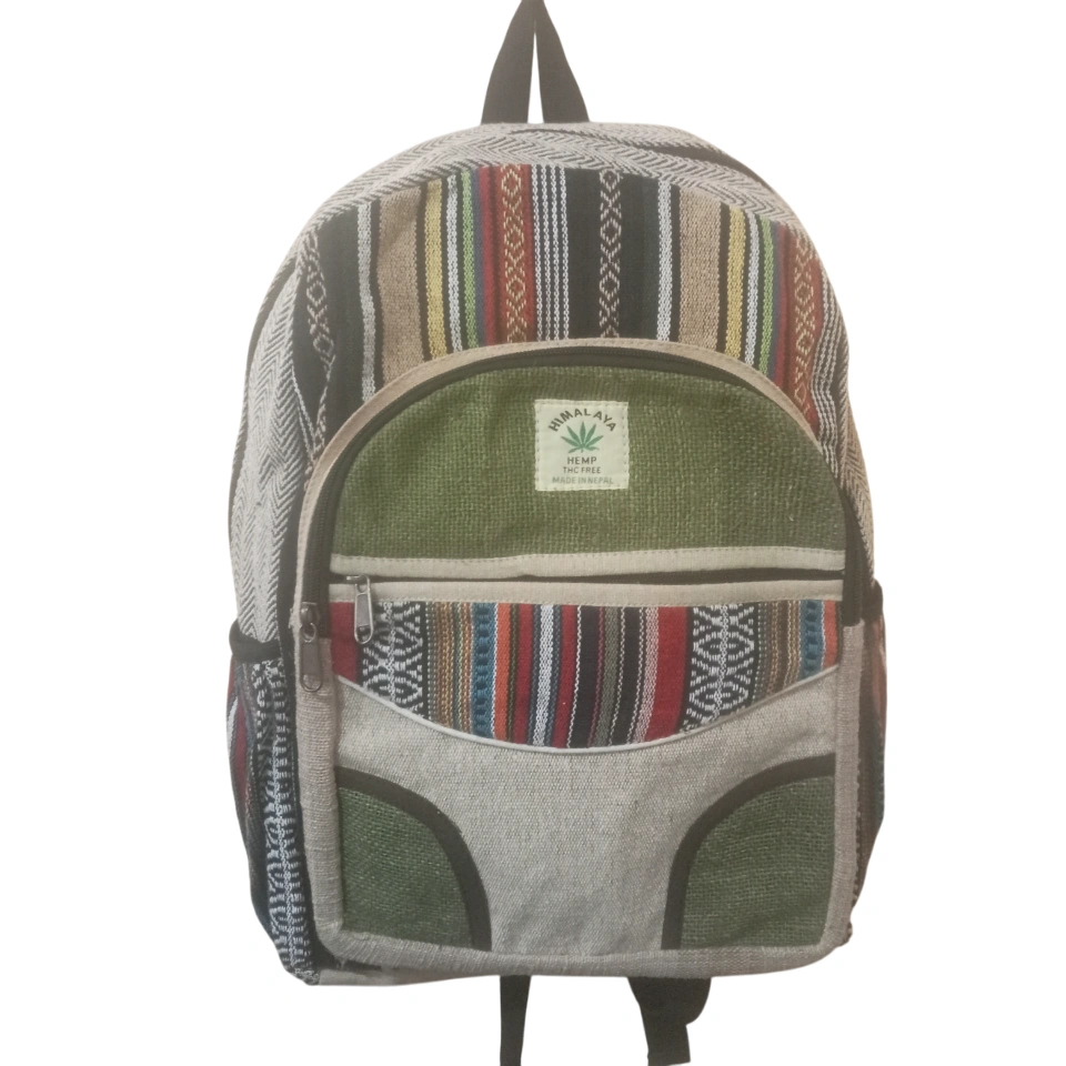 Discover the perfect blend of sustainability and style with our Handmade Sustainable Hemp & Cotton Large Unisex Backpack. Crafted with care in Nepal, this eco-friendly backpack is made from a durable mix of hemp and cotton, offering a unique, vibrant color blend that stands out. Measuring 41 cm in length, 29 cm in height, and 10 cm in width, it provides ample space for your essentials, making it ideal for daily commutes, travel, or outdoor adventures. The adjustable straps ensure a personalized, comfortable fit for all users, enhancing versatility and ease of use. Each backpack is meticulously handcrafted, reflecting Nepal’s rich artisanal heritage while promoting ethical fashion. The natural hemp and cotton materials are not only environmentally friendly but also built to last, offering a sustainable alternative to conventional accessories. Perfect for eco-conscious individuals, this large unisex backpack combines practicality with a bold, stylish design. Make a statement while supporting sustainable practices and skilled craftsmanship from Nepal. Choose this backpack to carry your essentials with confidence and contribute to a greener, more ethical world of fashion.